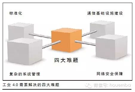 工业4.0是由大规模批量生产向大规模定制生产转变,是由集中生产向网络化异地协同生产转变,是由传统制造企业向跨界融合企业转变。德国工业4.0工作组的最终报告指出,实现工业4.0尚存在标准化、复杂的系统管理、通信基础设施建设、网络安全保障等四大难题。